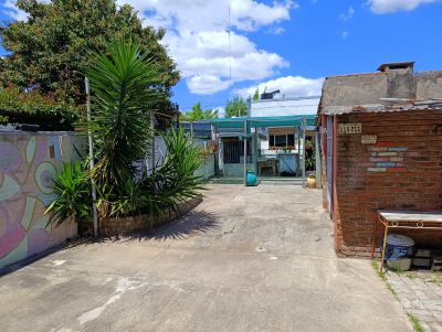 Construcción sólida con techos de plancha y zinc superior, instalaciones eléctricas nuevas, patio al frente con rejas y entrada para un vehículo.